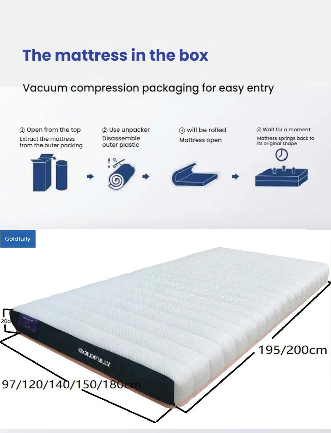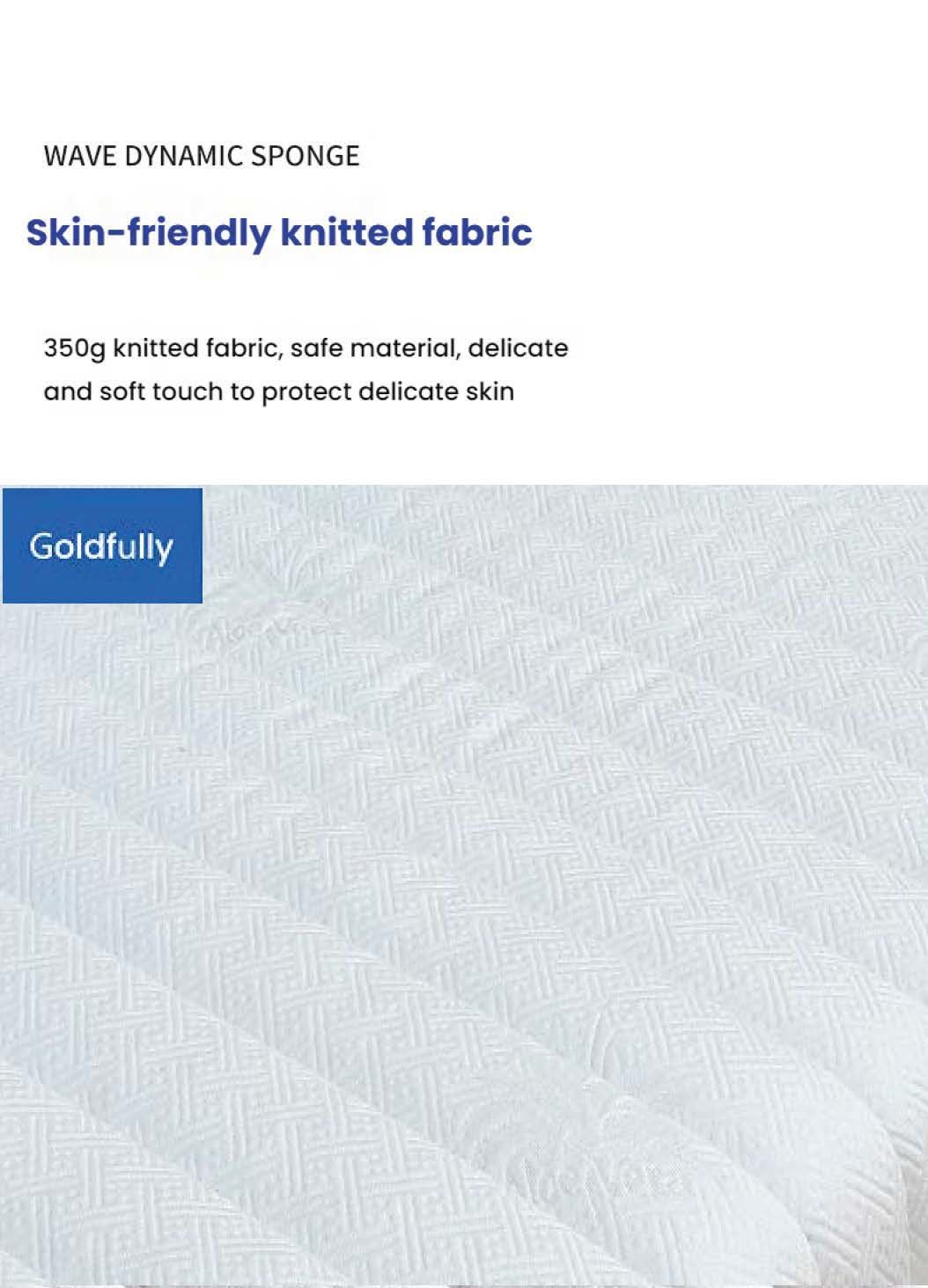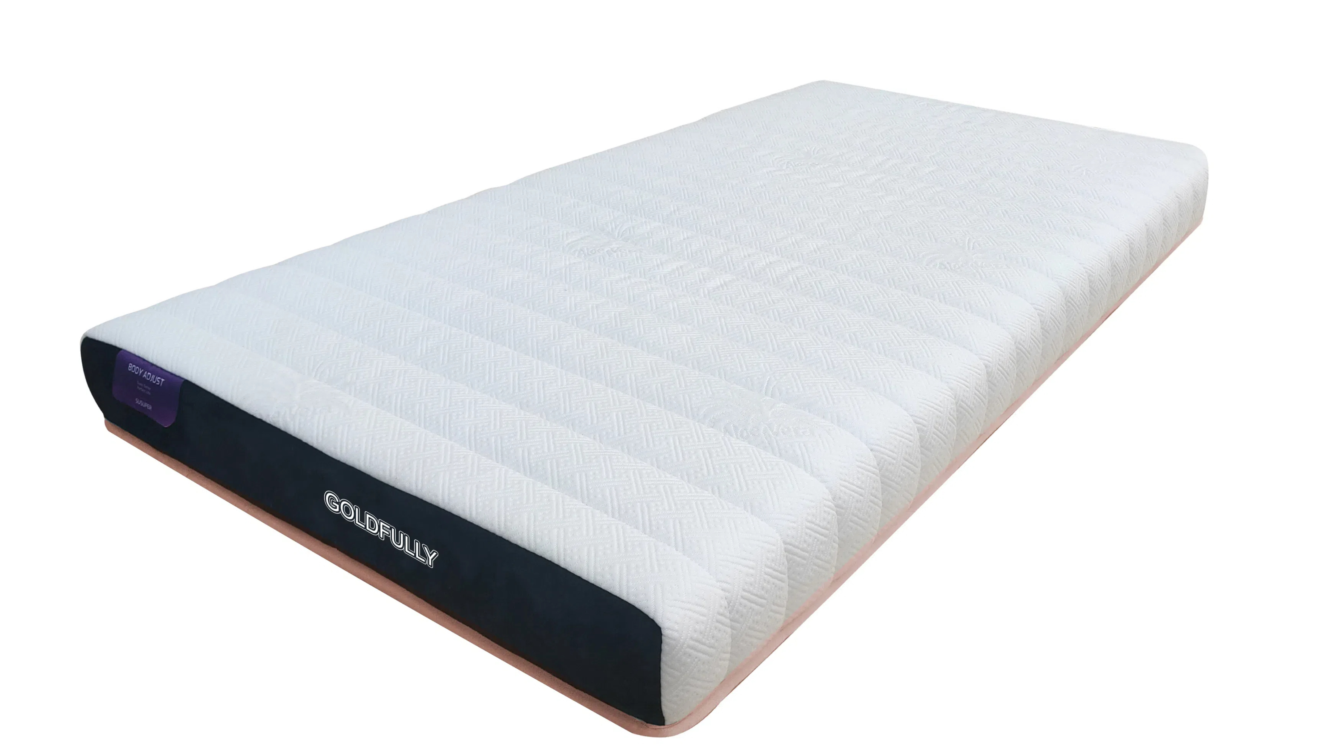隆重推出 Goldfully 床垫。它采用时尚的设计,将柔软的花纹表层与耐用的底座相结合。其“人体辅助”标识表明它可能提供定制支撑。非常适合追求舒适和高质量睡眠的人士。